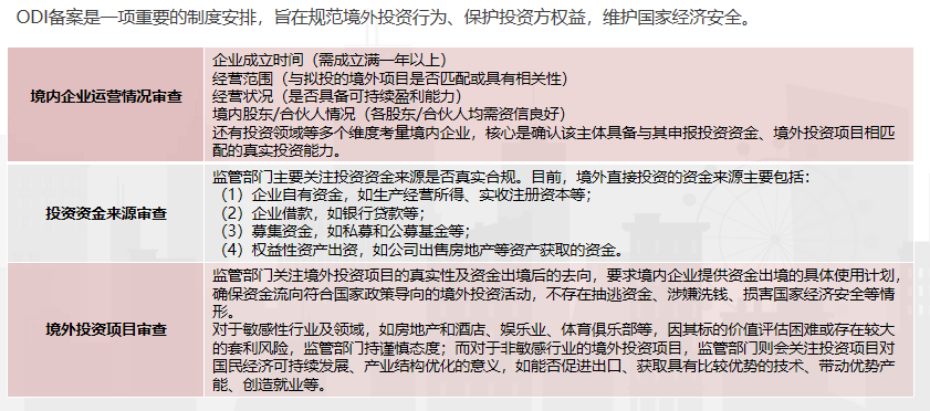 ODI,英文全称为Overseas Direct Investment,指境内企业通过新设、并购及其他方式取得境外企业所有权、控制权、经营管理权及其他权益的投资行为。